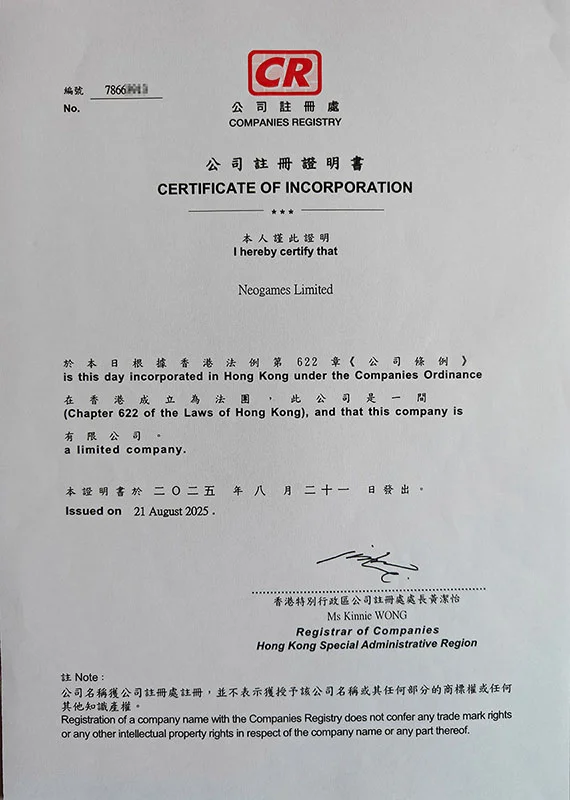 Название компании: Neogames Limited